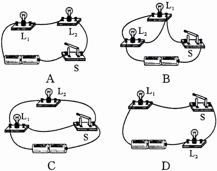 7. 如图所示电路中,开关能够同时控制两盏灯,且两灯的发光情况互不影响的是(