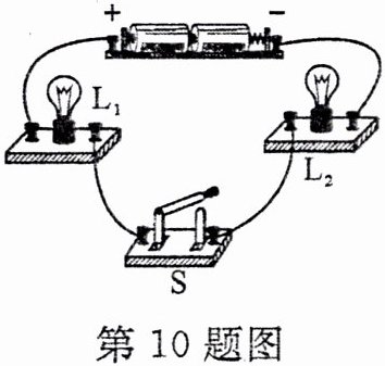 10. 小明正确连接如图所示的电路,闭合开关 $ S $,发现灯 $ L_1 $ 不发光,灯 $ L_2 $ 发光。由此判断电路故障可能是(