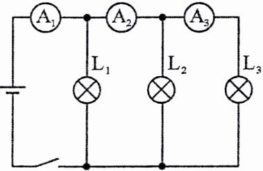 13. 电路如图所示,闭合开关后,电流表$A_{1}$的示数为$1\ A$、$A_{2}$的示数为$0.7\ A$、$A_{3}$的示数为$0.2\ A$,则通过$L_{1}$的电流为
