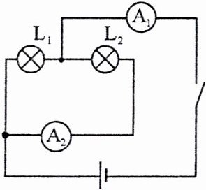 12. (2023·天津)在探究串、并联电路中电流的规律时,做了如图所示的实验。闭合开关后,电流表$A_{1}$、$A_{2}$的示数分别为$0.5\ A$和$0.3\ A$,则通过小灯泡$L_{1}$的电流为