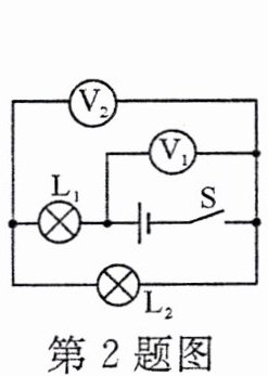 2. 电路如图所示,开关闭合后,电压表V₁测