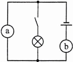 8. 如图所示,图中的a、b是电流表或电压表,闭合开关,灯泡正常发光,下列说法正确的是(
