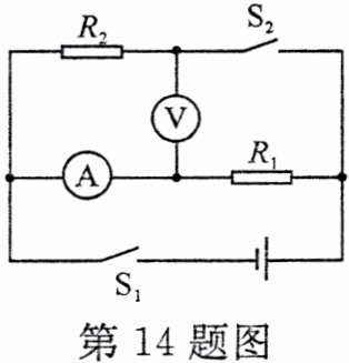 14. 如图所示的电路中,电源电压为 5 V。开关 S₁ 闭合、S₂ 断开时,电压表的示数是