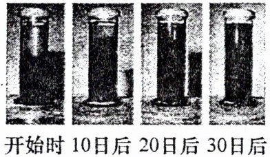 2. 【教材素材】如图,在量筒中装一半清水,用细管在水的下面注入硫酸铜溶液,可观察到无色的清水与蓝色硫酸铜溶液之间有明显的界面,静置 10 日后,界面变得模糊不清。这种现象叫作
