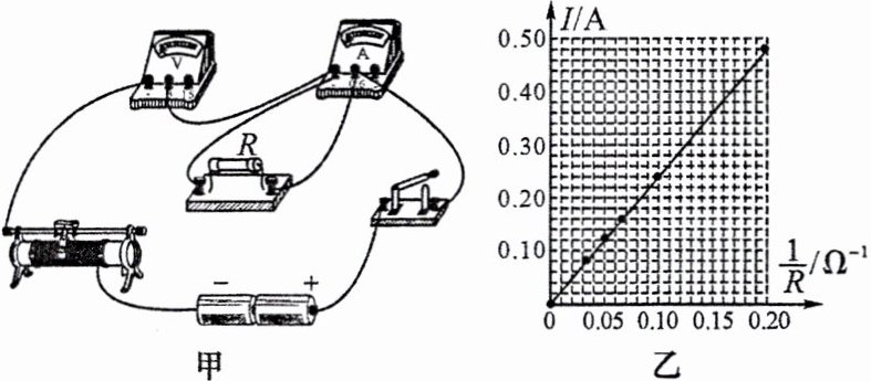 表示数。(4) 小明通过多次实验测得多组数据,并利用这些数据得到如图乙所示的电流$I$随电阻的倒数$\frac{1}{R}$变化的图像,由图像可以得到的结论是