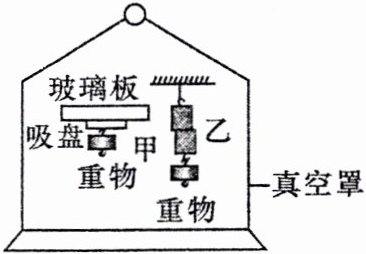 13. 【教材习题改编】如图所示,将吸盘内的空气排尽后紧紧压在玻璃板上,使它们“粘”在一起,下面可以吊一重物而不下落(图中甲);将表面光滑的两铅块紧压后会“粘”在一起,下面也可以吊一重物而不下落(图中乙)。如果把它们分别放入真空罩内,当抽去空气时,下列说法正确的是 (
