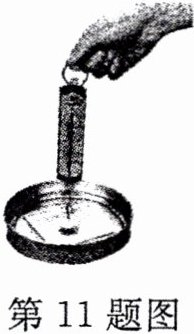 11. 【教材习题改编】如图所示,把干净的玻璃板吊在弹簧测力计的下面,读出测力计的示数,使玻璃板水平接触水面,并慢慢向上提弹簧测力计,这时会发现弹簧测力计的示数变