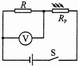 5. 如图是一款摄像机自主启动装置的简化电路图,电源电压恒为$12V$,$R_{P}$是红外线探测电阻,$R$是定值电阻,阻值为$8\Omega$。闭合开关$S$,当$R$两端的电压达到$8V$时,摄像机自主启动拍摄。求: