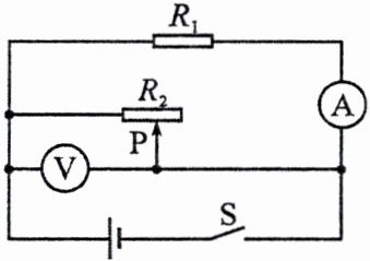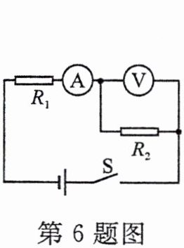 6. 如图所示,$R_{1}=10\Omega$,开关闭合后电流表的示数是 0.2 A,电压表的示数是 4 V,$R_{2}$的电阻为