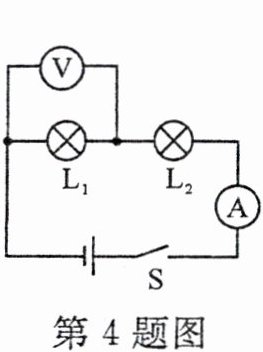 4. 如图所示,开关闭合,两个灯泡都发光,突然,一个灯泡熄灭,两个电表一个示数变大,一个示数变小,则该电路故障可能是(