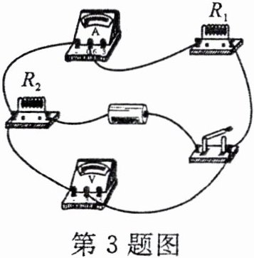 3. (2023·临沂)如图所示电路的电源电压为 1.5 V,电阻$R_{1}$的阻值为 2 Ω,闭合开关后,电流表的示数为 0.3 A,则(