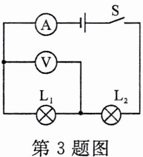 3. (2023·内江)如图所示的电路中,闭合开关后一灯亮,另一灯不亮,电流表有示数,电压表无示数,其原因可能是(