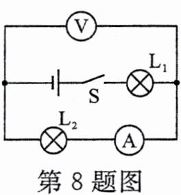 8. (2024·达州)如图所示电路,闭合开关后,整个电路正常工作。其中一盏灯突然熄灭,两只电表示数均变大,则该电路可能发生的故障为(