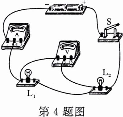 4. 如图所示的电路,闭合开关 S 后,两灯均发光,一段时间后,一盏灯突然熄灭,电流表、电压表都有示数,则该电路故障可能是(