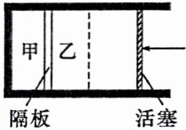 14. (多选)(2024·潍坊)如图所示,用气缸、固定隔板和活塞密闭甲、乙两部分气体,气缸和活塞均不导热,隔板导热良好。迅速将活塞向左推至图中虚线位置并固定,静置一段时间。下列说法正确的是(