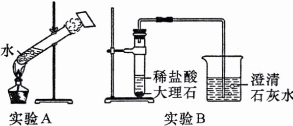 (2)实验B中,将一块大理石用锤子砸成小块,放入试管中,再加入适量稀盐酸,观察到大理石表面有气泡冒出,并逐渐减少,烧杯中澄清石灰水变浑浊。上述实验过程中,发生物理变化的是