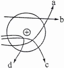 (1)图a、b、c、d四条轨迹中,不可能是α粒子在该实验中的运动轨迹的是