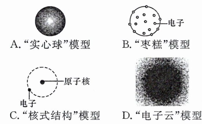 2. [化学史]下列原子模型中是卢瑟福通过α粒子散射实验提出的是(