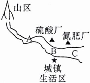 。(2)某城镇生产、生活区的分布如图所示。请根据所学知识回答下列问题。你认为在A、B、C三处中,最适合作自来水厂取水点的是
