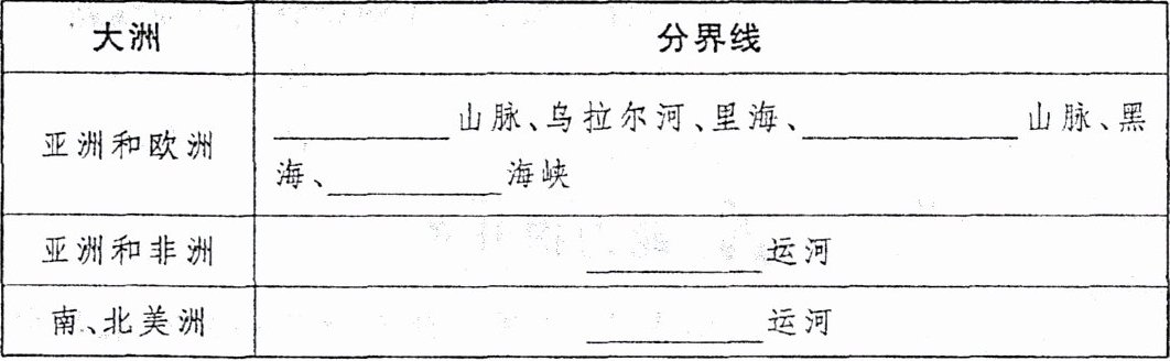 2.(1)亚洲、欧洲、非洲、北美洲、南美洲、大洋洲、南极洲。