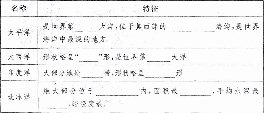 3.(2)一 马里亚纳 S 二 热 三角 北极圈 小 浅