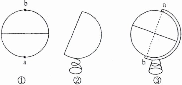 9. 图③中,把球用倾斜的铁丝穿起来,倾斜的铁丝两头,即a和b处,用胶布裹几圈固定。下列说法中,正确的是(