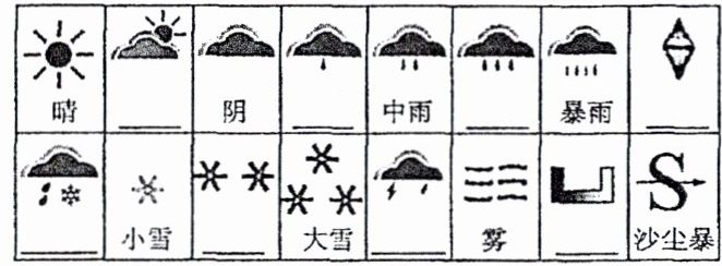 和风等的情况。3. 常用天气符号。