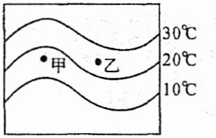 8. (邵阳中考)读下面某地区7月份等温线分布图,甲、乙两地中有一地为海洋。下列叙述,正确的是(