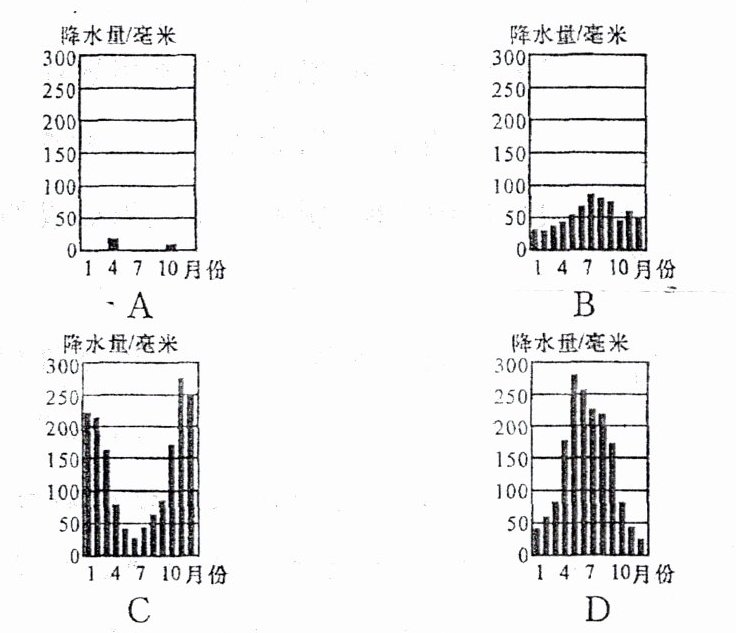 2. 下列选项是根据表中数据绘制的该地区降水量柱状图,其中绘制正确的是(