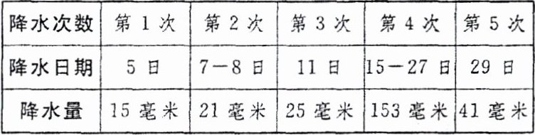 某地理兴趣小组观测当地某月全部五次降水过程,并记录了降水量(见下表)。当地年平均降水量约1100毫米。据此完成8~9题。