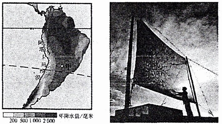 阿塔卡马沙漠被称为世界的“旱极”,但每年有200余天被大雾笼罩。当地人制作捕雾网,收集雾里的潮湿水汽,解决用水问题。下图为南美洲局部地区年降水量图和捕雾网图片。读图,完成12~14题。