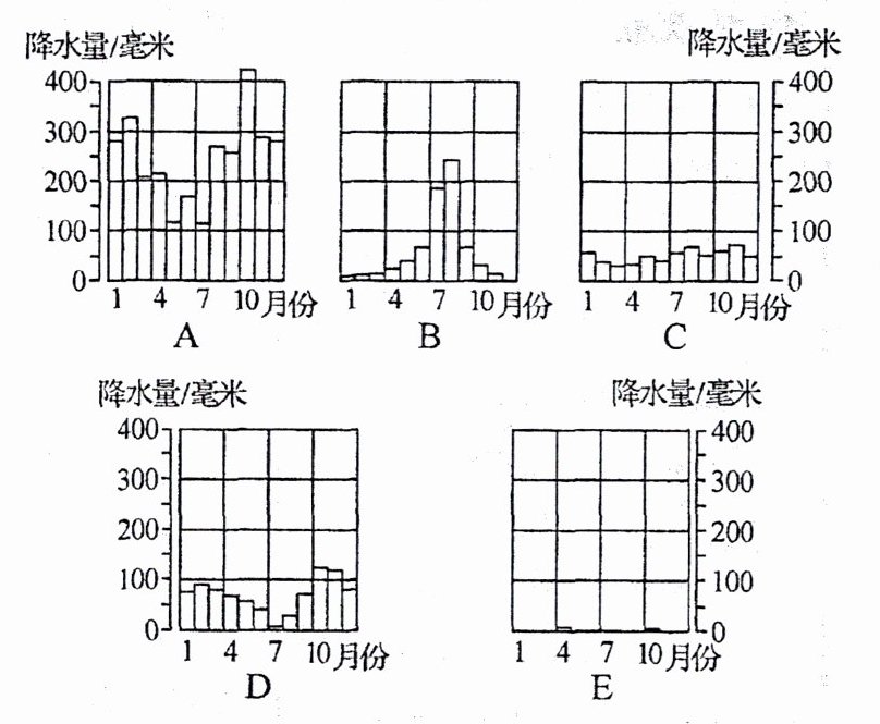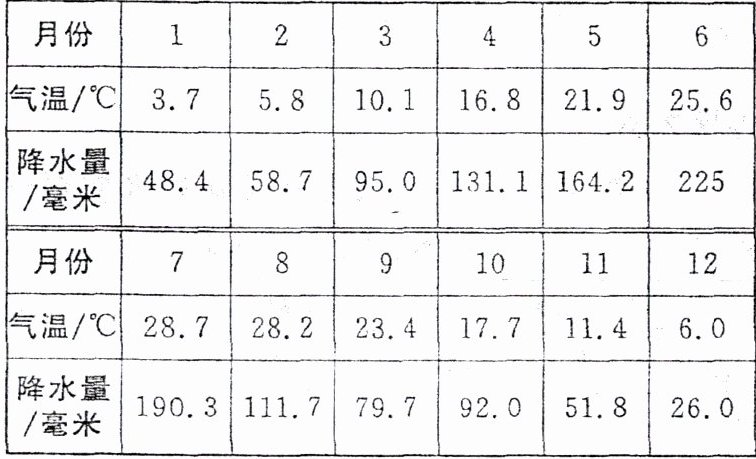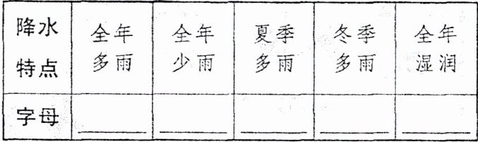 (1) 探究降水的季节变化:把材料一中字母表示的降水量柱状图填入下表。