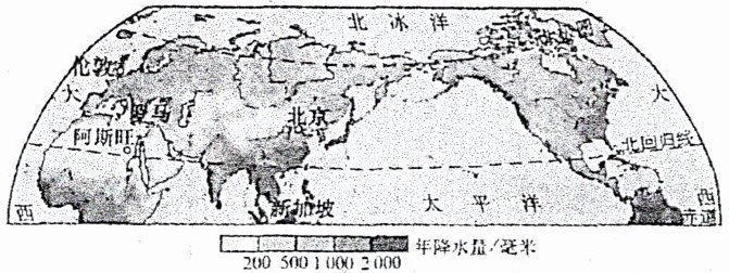 16. 学校七年级某班学生对世界降水量的分布进行了探究学习。结合材料,回答下列问题。