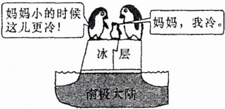 全球气候变暖正威胁着企鹅的家园。结合漫画,完成3~4题。