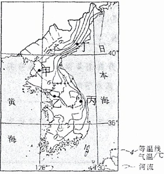 (北京中考)朝鲜半岛与中国陆地相连。下图为朝鲜半岛1月平均气温分布图。读图,完成7~8题。
