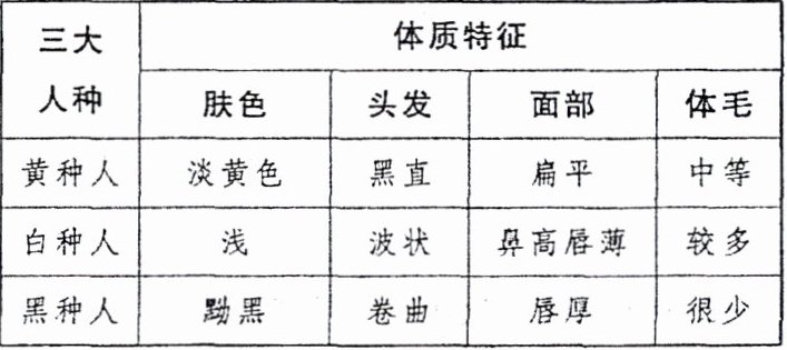 种人三个主要人种。4. 人种地位:不同人种虽然有体质上的差异,但没有优劣之分,所有人种都是