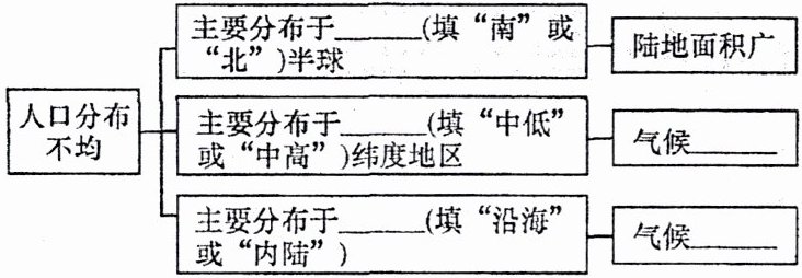 6. 【人口分布与环境】世界人口分布很不均匀,有的地方人口稠密,有的地方人口稀疏。人口的分布状况与地理环境密切相关。阅读图文材料,回答下列问题。