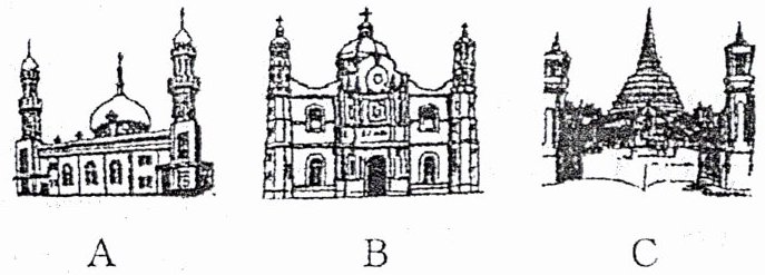 7. 读世界三大宗教建筑物图,回答下列问题。