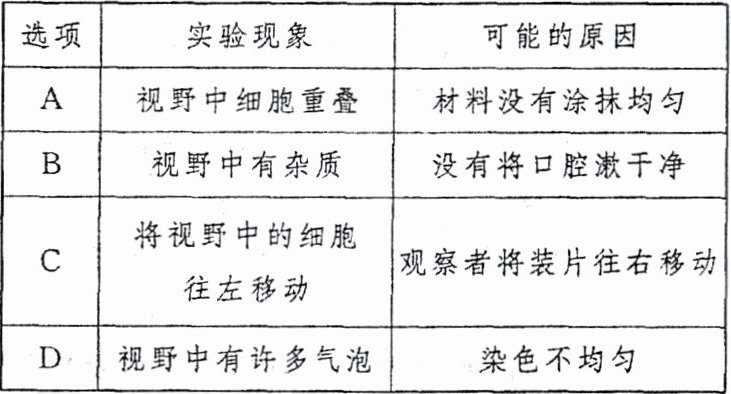 4. 用显微镜观察人的口腔上皮细胞临时装片时,实验现象与原因分析不吻合的一项是 (