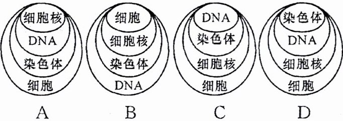 9. 科学思维 归纳 下列图形中大圈对小圈有包含关系,能够恰当表现细胞、细胞核、染色体、DNA 之间关系的图形是(