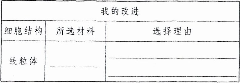 。(4) 有同学对小丽的作品提出了改进方案,他指出“用刷有绿色颜料的太阳能板作为叶绿体,可以类比叶绿体将光能转化为化学能的功能”,请你根据这一思路,提出能够展示线粒体功能的模型设计方案: