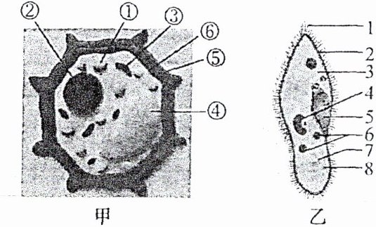 。(2) 乙是一种单细胞生物,它的细胞与甲细胞相比没有