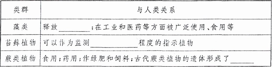 1.没有 茎和叶 有 没有 没有 没有 假根 输导 光合 孢子 水 2.氧气 空气污染 煤