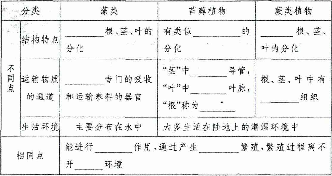 【例】下列关于藻类、苔藓、蕨类三种生物的叙述,错误的是(