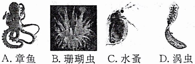 2. 凉拌海蜇丝是北方餐桌上常见的一道凉菜。海蜇经过凉拌后,肉质脆而有韧劲,清凉爽口。下列和海蜇属于同一类群的是(