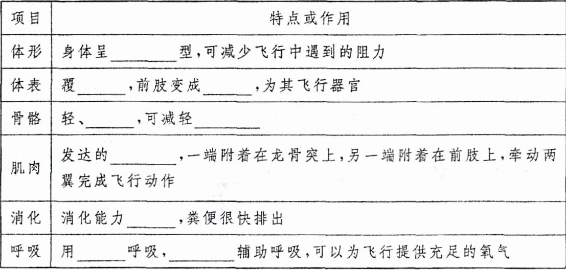 1.恒定 羽 翼 气囊 肺 2.改变 改变 3.毛 恒定 哺乳 门齿 臼齿