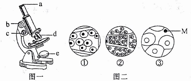 A.图一中调节b使镜筒下降时,眼睛应注视a
