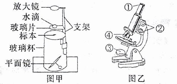 。(4)图甲中平面镜,相当于图乙单目显微镜结构中的[ ]
