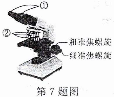 7. 如图为双目显微镜。该显微镜的镜筒不能移动,可以通过上升或下降载物台来调节玻片与物镜之间的距离。下列说法不正确的是(