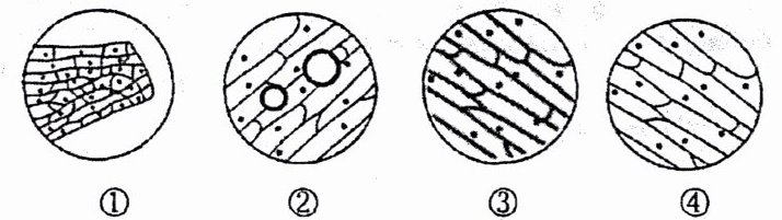 8. 如图是同学们在生物学课堂上观察洋葱鳞片叶内表皮细胞临时装片时看到的4个视野,下面对这4个视野的解释正确的是(